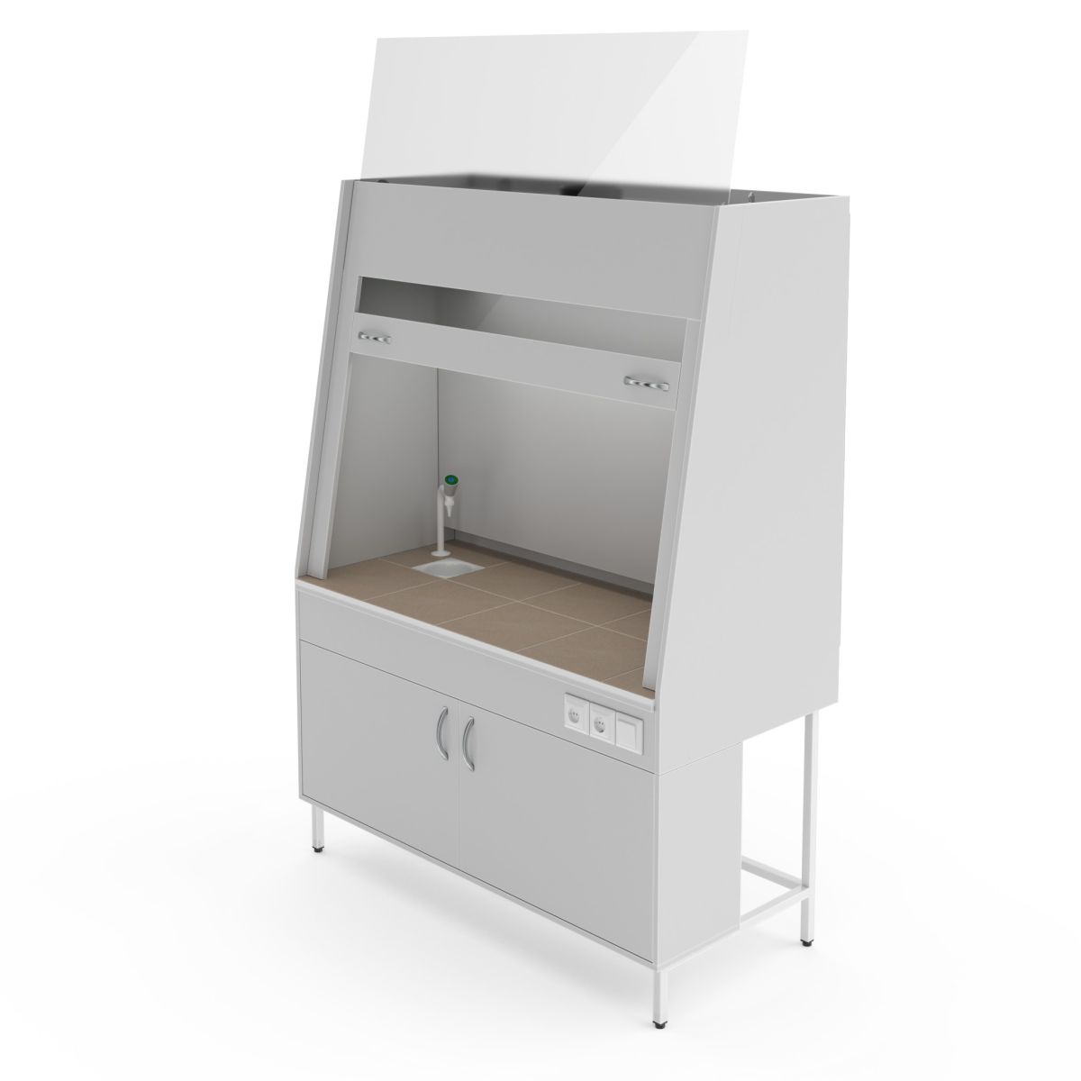 Читать все статьиВытяжной шкаф со столешницей из керамогранитной плитки и с сантехникой